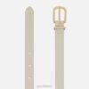 Moteriškas diržas su rafinuota atmosfera, kuri akimirksniu suteiks charakterį kasdieniniam stiliui. Šis lengvai derinamas aksesuaras, pagamintas iš subtilaus beveik balto atspalvio nappos, tiks tiek prie miesto, tiek prie laisvalaikio aprangos. Šis aksesuaras pasižymi nesudėtinga minimalistine estetika ir nuostabia apvalia metaline sagtimi, kuri dar labiau padidina rafinuotą paprastumą.