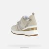 Moteriški sportbačiai su pleištu, pasižymintys drąsiu žavesiu ir kasdienišku stilingumu. Šioje versijoje yra sportinio stiliaus viršutinė dalis, pagaminta iš zomšos ir blizgios medžiagos universalioje šviesiai smėlio spalvos paletėje. zosma buvo sukurta atsižvelgiant į kasdienį miesto stilių ar laisvalaikio apsirengimą. Ji turi figūrą glostančią estetiką, o pėdas lepina palaimingu geros savijautos jausmu visą dieną.
