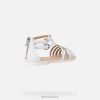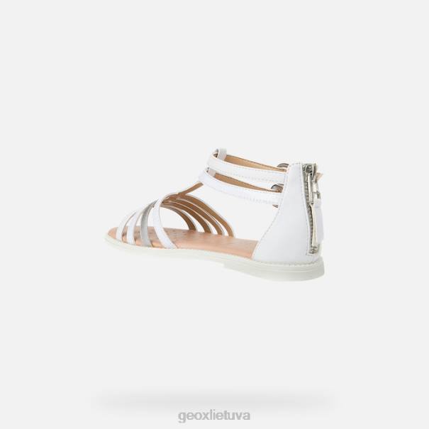patogūs kvėpuojantys sandalai mergaitėms su vasariškai madinga atmosfera. Patrauklios estetikos baltoje paletėje karly basutės yra idealus pasirinkimas didesnėms mergaitėms. jo viršutinė dalis pagaminta iš odinės ir lakinės odos efekto medžiagos bei reguliuojamas dvigubas dirželis su sagties detale.