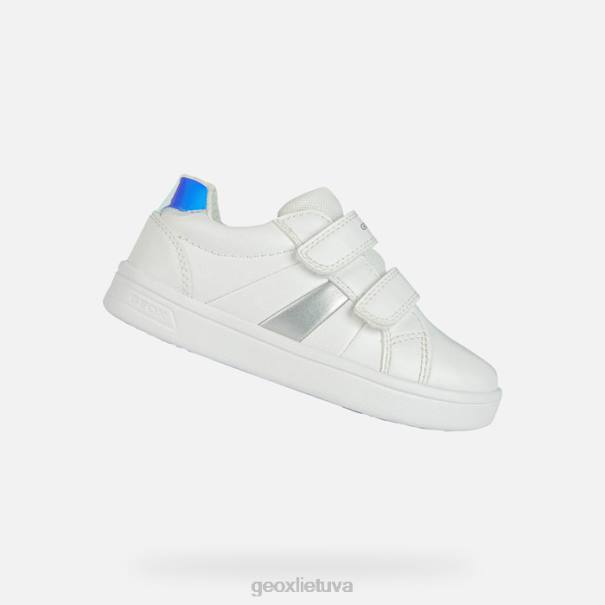 mergaičių laisvalaikio išvaizdos, kvėpuojantys žemi sportbačiai, paimti iš teniso kortų stiliaus. ši klasikinė balta djrock versija su sidabro detalėmis buvo sukurta iš odos efekto medžiagos ir perlamutrinės nubuko efekto medžiagos mišinio. aukštai ant pėdos lanko su praktišku dvigubu užsegimu kabliuku ir kilpa užtikrina minkštą prigludimą ir aukščiausią komfortą visą dieną.