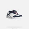 Kvėpuojantys amortizuojantys sportiniai bateliai jauniesiems, kurių estetika pritaikoma prie bėgimo batelių stiliaus. ši tamsiai mėlynos ir baltos spalvos illuminus versija pripildyta kasdieniško žavesio ir energijos, ji puikiai tiks tiek mokykloms, tiek laisvalaikiui. Pagaminta iš sulenktos odos efekto medžiagos ir audinio, šios avalynės gabalas turi apšvietimą ant pado, kad būtų linksma ir pakili nuotaika vaikštant.
