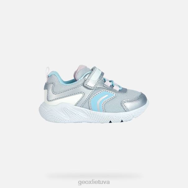 lengvi patogūs sportbačiai mergaitei su bėgimo batelių stiliumi. Pagaminta iš tinklelio ir odos efekto medžiagos, „sprintye“ išsiskiria šiuolaikiška šiuolaikine estetika, kuri perima bėgimo batelių pasaulio užuominas. šios patogios, kvėpuojančios, sidabrinės spalvos kedų versija su šviesiai mėlynais akcentais turi ypač lengvą struktūrą ir kasdienei išvaizdai suteiks moteriškumo.