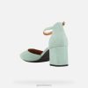 moteriškas siurblys su nesenstančio dizaino ir šiuolaikiško patrauklumo. pagamintas iš originalaus mėtų žalio atspalvio zomšos, Biglianos teismas pritraukia susižavėjimo kupinus žvilgsnius. formalus ir prašmatnus, su šiek tiek susiaurėjusiu pirštu ir figūrą glostančiu vidutinio aukščio kulnu, kuris suteikia malonumą vaikščioti. Tai puikus pasirinkimas kasdienai verslo aprangai pagyvinti ar kasdieninei įvaizdžiui užbaigti.