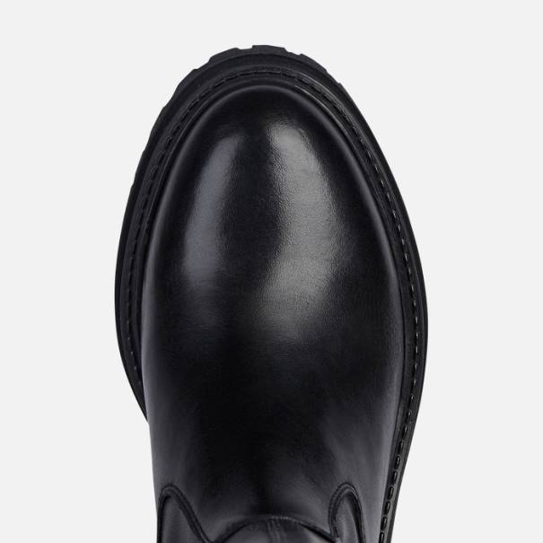 Moteriški batai virš kelių, pasižymintys šiuolaikišku stiliumi ir puikiai tinkantys kasdienėms progoms. Pagaminta iš elastingos odos efekto medžiagos ir lygios odos visiškai juodoje paletėje, tai idealus pasirinkimas tiems, kurie nori patogių kvėpuojančių batų, kuriuos galėtų avėti visą dieną. pripildytas šiuolaikiško patrauklumo, jis yra puikus universalus laisvalaikio apranga, o jo dizainas virš kelių suteikia jai madingą atmosferą, o tai reiškia, kad jis puikiai tinka ir kasdieninei išvaizdai.