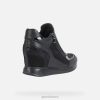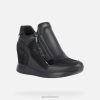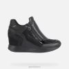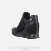 patogūs kvėpuojantys moteriški sportbačiai su bėgimo batelių estetika ir šiuolaikiška atmosfera. Pagaminta iš elastingos nappos ir margintos odos, ši visiškai juoda nydame versija yra universalus bet kokios neformalios kasdienės įvaizdžio priedas. su ypač patogiu pleištiniu padu, jis skleidžia neabejotinus bėgimo batelių atspalvius, kurie išryškina glotnų šiuolaikinio silueto grožį.
