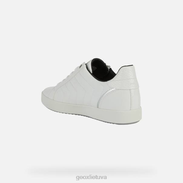 Kvėpuojančio dizaino žemi patogūs moteriški sportbačiai. Šie patogūs blomiee sportbačiai, pagaminti iš baltos spalvos, yra su odos efekto medžiagos su pitono stiliaus detalėmis ir laikosi ant šiuolaikiškai atrodančio dėžutės pado, kuris vertas naujausių jaunystės tendencijų.