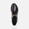 patogūs kvėpuojantys moteriški batai su šiuolaikiško miesto patrauklumo. Pagaminta iš minkštos paprastos juodos odos, hoara turi sagties dirželį, papuoštą akį traukiančia auksine grandinėle. madingas prisilietimas, kuris suteiks asmeniškumo į kasdienę išvaizdą, o pėdas lepins geros savijautos pojūčiu.