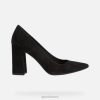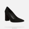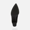 moteriškas aukštakulnis smailaus piršto siurblys su nesenstančio minimalaus dizaino. Su minkštos zomšos viršutine dalimi ši visiškai juoda bigliana versija suteikia miesto stiliaus įvaizdžiui ir biuro aprangai rafinuotumo. patogūs ir kvėpuojantys, šie figūrą glostantys batai yra būtini miesto drabužių spinta.