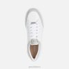 rafinuotos išvaizdos ir teniso aikštelės dizaino moteriški sportbačiai. dalyla – tai patogūs ir itin universalūs teniso kortų stiliaus sportbačiai, išsiskiriantys gaiviu, tačiau įmantriu patrauklumu, skirti patobulinti kasdienę kasdienę aprangą. Su vulkanizuotu šiuolaikiškos estetikos padu, jis yra baltos spalvos su šviesiai pilkomis detalėmis ir yra pagamintas iš susuktos odos ir zomšos.