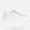Moteriški sportiniai sportbačiai su šiuolaikišku, patogiu kvėpuojančiu dizainu. ši glotni balta versija buvo sukurta iš margintos odos ir elastingos napos mišinio ir tiks įvairioms progoms. skyely su teniso kortų stiliaus estetine ir kasdieniška atmosfera yra puikus būdas užbaigti kasdienį stilių.